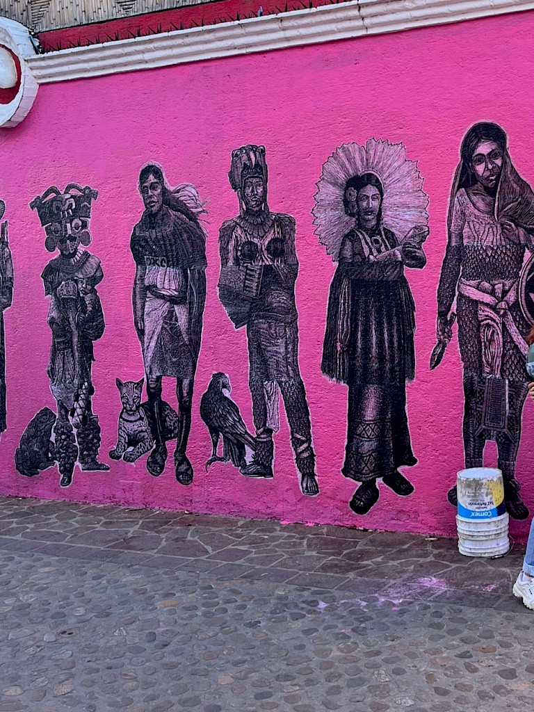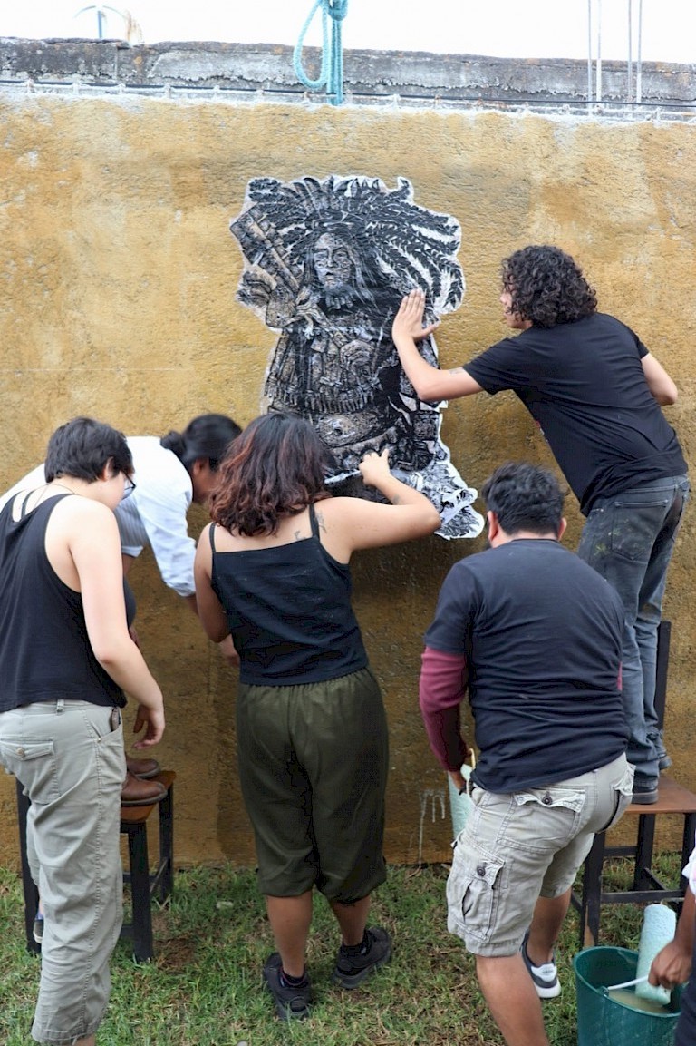 Subterraneo create images that contain figures from the popular Mexican imagination, as well as characters of indigenous affiliation: jaguar warriors, street vendors, individuals wearing traditional and ceremonial headdresses and clothing; historical figures such as Emiliano Zapata or local figures such as Tehuanas and peasants. In this way, the collective appropriates public space to commemorate and pay tribute to characters from popular folklore, and also minority and historically marginalised social groups.