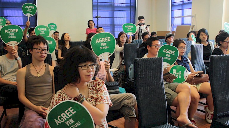 made and comprised mainly of curators, activists, media reporters as well as Indonesian workers and students. The democratic design of the dialogue ensured that all audience members were involved in the process.