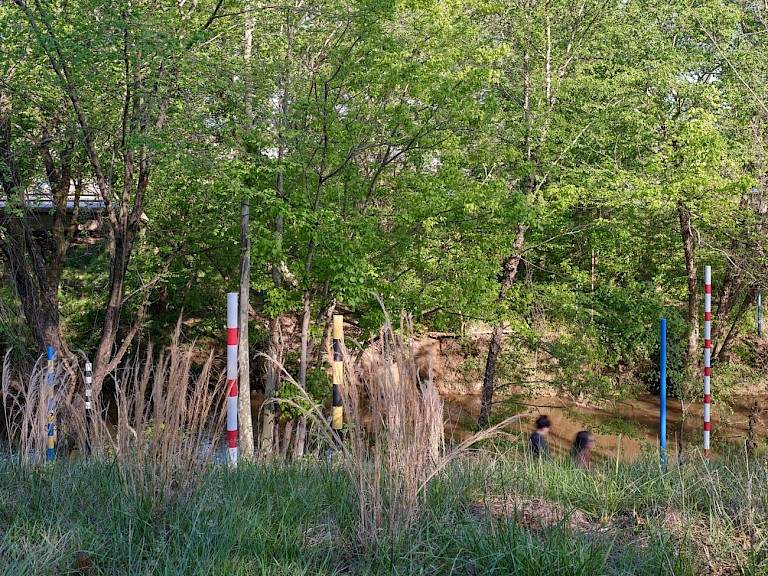 "Alluvial Decoder is an excellent example of how public art can be created to educate and invite conversation surrounding critical issues. Investing in artists to create a visual storytelling experience is one of the best ways cities can communicate a message and meaningfully engage our communities. The impact of an immersive experience in particular is much greater than simply printing a sign or telling a story. As an artwork, Alluvial Decoder was designed with careful attention to concept, aesthetics, and the history surrounding the site - all while being executed on an extraordinarily tight budget and with significant site constraints."" Kelly McChesney, Public Art Director, Raleigh Arts