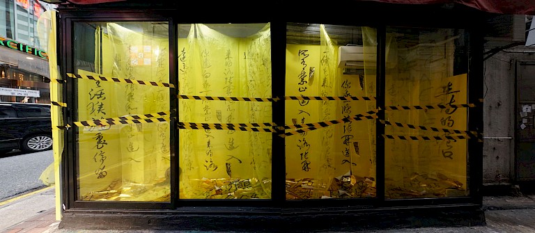 The project is a place-making one by materializing alternative visions for a place that is semi-private (in terms of property ownership) and semi-public (in terms of being part of the streetscape in Hong Kong). The project turns what is by default a shop or a shop window (due to the social organization of urban space and the imperative of the capitalist market) into a transitional space where literature and visual art meet. It produces a reality that challenges the hierarchy of value in public space and public reasoning. In streets that circulate texts that are predominantly composed for advertising products and services, where materials for buildings are monotonously glass, steel and concrete, the project intervenes with a different sensibility.