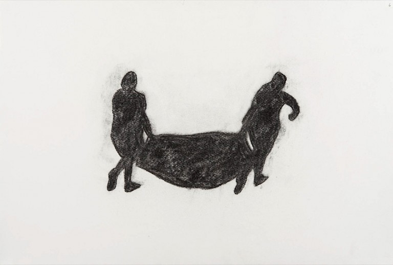Since 2003 the artist Beatriz Gonzalez looked for ways to save the columbaria since they were endangered as an architectural venue. Because of its original status, the buildings could be modified or destroyed so long as the changes did not affect the main globe of the Central Cemetery. In 2007 Gonzalez had an idea to create a project that could bring attention to the columbaria as a place of memory and art-led urbanism or place-making. Gonzalez collected images from different newspapers that showed the realities of the armed conflict in Colombia. She then made a selection and made eight silhouettes inspired in the photographs. The images showed the way in which people carried dead bodies out of conflict zones, which are recurrent in the news.