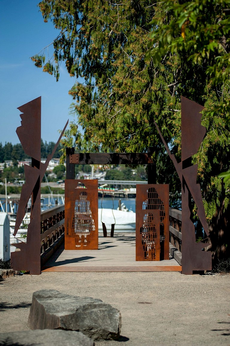 Located on the southern shore of the entrance to Eagle Harbor, the Wyckoff Company facility on Bainbridge Island was once one of the world’s largest creosote plants. Treated wood from the site was used for some of the 20th century’s most important infrastructure projects, including wharves in San Francisco, flood control channels in Los Angeles, and the Panama Canal. By 1987, however, environmental concerns resulted in the designation of the area as a top priority Superfund site, and the property came under the control of the Environmental Protection Agency.In July, 2001 Mayor Dwight Sutton appointed the Wyckoff Acquisition Task Force to recommend the best use of the property. After study, the Task Force delivered a “preferred alternative” to create a regional public park at the site and recommended the park be named after the late U.S. Representative Joel Pritchard, a summer resident of the Island.A Memorial to March 30, 1942At the same time, plans were being drawn up for the Bainbridge Island WWII Nikkei Exclusion Memorial—a collaboration between the Bainbridge Island/North Kitsap Interfaith Council and the Bainbridge Island Japanese American Community (BIJAC)—at the western edge of what would become Pritchard Park. A ceremony marking the 60th anniversary of the forced removal of Japanese Americans from Bainbridge Island took place March 30th, 2002 along Taylor Avenue, the site of the Eagledale Ferry Dock from which the removal took place. In August 2002, 95-year-old Fumiko Hayashida, the oldest survivor of the exclusion, testified before the U.S. Congress in support of a bill to direct the National Park Service to study the site for national memorial status.Two Themes: Healing and CommunityIn February 2003 the City Council officially endorsed the name of Pritchard Park. Friends of Pritchard Park, a group consisting of community members from the Task Force, the Bainbridge Island Land Trust, BIJAC and the Pritchard family, encouraged community fundraising for the $8MM purchase. The Island’s federal and state representatives assisted in obtaining grants, while representatives and staff from the City and Parks District worked hard to get state and local funds. During the campaign to raise funds a theme evolved that this would be a healing park—a healing for two wrongs in the past: one to the social fabric of the community and constitutional rights of citizens; the second to the contamination of the land itself.In May 2008, Congress voted to include the Memorial in the Minidoka National Historic Site as part of the Consolidated Natural Resources Act of 2008. The purchase of the lands for Pritchard Park and the Exclusion Memorial was made possible through the efforts of myriad members of the community working in collaboration with local, state, and federal government entities and private donors to secure funding and establish a safe and meaningful public resource. This grassroots effort, which has continued for 20 years of development at the Memorial, exemplifies the power of Community and the dedication to “Nidoto Nai Yoni” that makes the Exclusion Memorial such a special place.