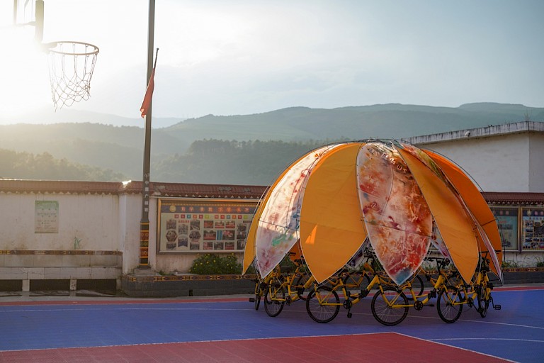 All materials used in the Fireworks Plan are remade from ready-made items, and Blooming in particular uses a large number of shared bikes abandoned in cities.