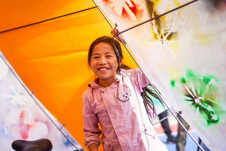 Materials are recyclable without customisation. For budget, time and environmental considerations, all construction course materials used in Program SPARK are common industrial products available on the market without customisation. Whether it's flexible tubes, wooden ladders, PVC water pipes, steel angles and other structural materials, or spray guns, coloured glassine, translucent PVC, corrugated paper rolls, ropes and other auxiliary materials, they are lightweight, inexpensive and easy to obtain. If relocated for exhibitions, these materials can also be easily dismantled, transported to the destination and reassembled in a short time.