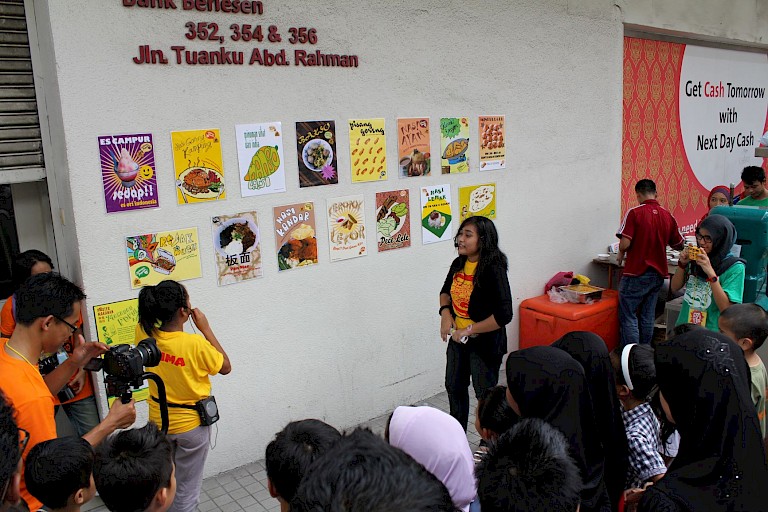 A few months before the project started, we conducted a survey to find out what skills teenagers wanted to learn. We took the 8 most popular skills and turned them into workshops that adopted experiential learning methods. The thematic community maps tie these workshops together. Themes range from food to transportation, and represent the voice of the Chow Kit youth. The mapping process creates avenues for them to explore, discuss, understand and share the knowledge they have acquired during research about the community. The outcome of these workshops like maps, brochures, videos, posters, performances and photographs, are given back to the community and beyond.