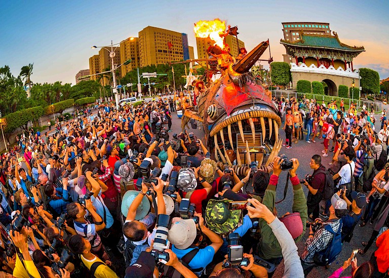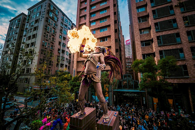 In September 2001, Cai Congming decided to hold an "Art Carnival"after the Nali wind disaster, he just fought without any further consideration, put on the thong took to the streets, and jumped samba. Unexpectedly,finally attracted nearly 200 people to participate in the first carnival parade the community held .The first carnival successfully integrated the artistic resources in the community, including artistic talent and artistic context, and condensed the centripetal force of the community residents more successfully .The following year, the second carnival parade invited five artists,and tried to publicize the popularity of "dream community" . Since then, the annual carnival attracts more and more artists to settle in the community.