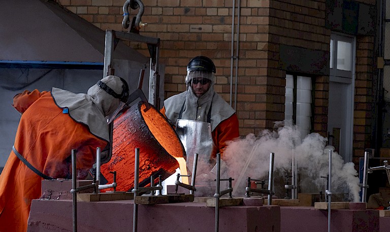The public art commissioning brief set by New South Wales government to commemorate and interpret the cultural heritage and significance of the place and was commissioned for the 250th anniversary of the meeting between Aboriginal Australians and the Endeavour crew. The Kamay Botany Bay National Park provides a rich multi-faceted site with many layers of significance and it was this location that was chosen for an art work. The Eyes of the Land and the Sea is cast in bronze and takes the form of seven ribs, resembling both the hull of HMB Endeavour, as well as the bones of a whale, being the Gadigal totem. The artists worked closely with the La Perouse Aboriginal community via the Gujaga Foundation to gather local histories and contemporary stories, later cocreating designs for the sculptural artwork. The Gujaga Foundation leads language, cultural and research activities within the La Perouse Aboriginal community. Gujaga works collaboratively with Elders, knowledge holders and leading academics and provides services to educational, cultural and corporate organisations relating to the cultural area of eastern, southern and south western Sydney. Key collaborators from the Gujaga Foundation were Research lead Ray Ingrey, Community Researchers: Kodie Mason, Sophie Youngberry, Academics Dr Paul Irish and Dr Shane Ingrey. The artists also worked with Gweagal artist, Shane Youngberry to develop cultural and historical content etched into each rib describing the 1770 encounters.