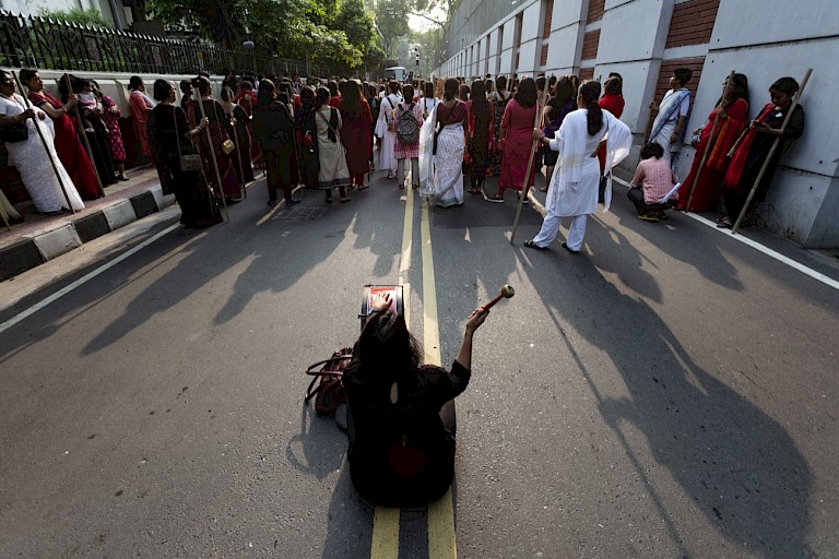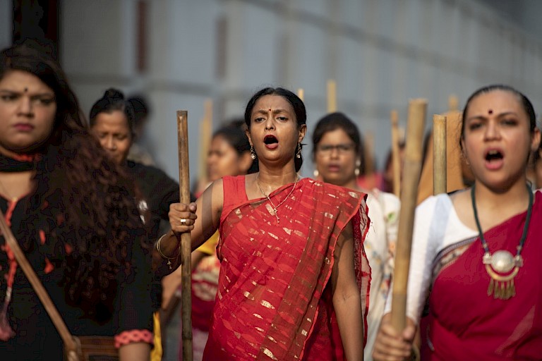 The performance acted as a powerful medium to initiate a broader dialogue about the constitutional rights of women. It brought to the forefront the urgent need for societal transformation, emphasizing the equality that women are entitled to by virtue of their citizenship. Through the striking imagery of women collectively wielding bamboo sticks, the performance served as a visual testament to their determination to reclaim their rights and assert their presence in a society that has long marginalized them.