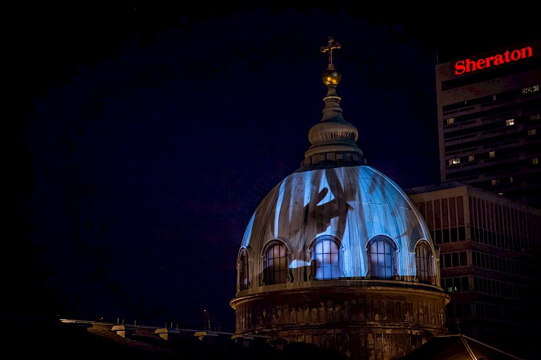 As the Pope’s visit arrived, excitement built on the ground, with the number of visitors ramping up to 20,000 per day. Speaking to the energetic quality of the site, Saligman noted that the more struggles were added, the more peaceful the site became, with the contemplative demeanor of the participants creating a palpable atmosphere. When the Pope’s procession passed the basilica, he stopped to bless the grotto, the individuals, and their struggles. All told, 150,000 individuals participated in the project.