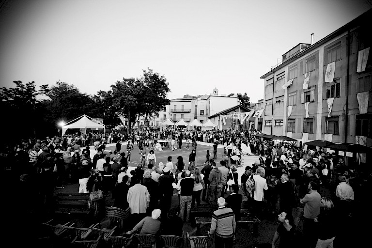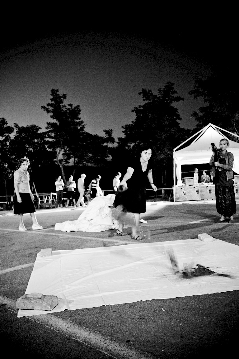 The urgency of this project roots from a traumatic past, that of rediscovering an identity of shame and turning it upside down, starting from a reliable and recognizable element for the community. The social purpose in the rural context of Southern Italy is to find a word, a speech to be expressed on the local identity and to find a dignity by re-elaborating a traumatic phenomenon. Its quality lies in the symbolic value of the collective action, focus of which are women, and their role in the community that become protagonist of a paradoxical iconoclastic gesture: the artistic action is to re-create their social positions and to subvert the meaning of a humiliating tradition, still alive in the collective memory of the South of Italy. However, “re-creating” is not among at damaging the traditional identity, but to transform its meaning: the stain shall no longer be something women must be ashamed of, but the sign of an active and colorful gesture of entertainment.