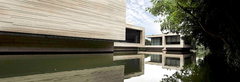 The Muxin Art Museum is managed by Ieoh Ming Pei and OLI’s Fabian Servagnat and is designed and constructed under the supervision of Hiroshi Okamoto and Bing Lin. In addition, it is funded by the Cultural Wuzhen Limited., Co and constructed by Jujiang Construction Group.