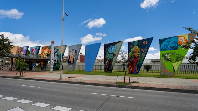 In collaboration with the Secretaria de Cultura Recreación y Deporte (the Secretary of Culture, Recreation, and Sports) and the Instituto Distrital de Patrimonio Cultural (District Institute of Cultural Heritage), IDARTES (District Institute of Art) created a program to promote urban art and to create cultural activations along the city of Bogota.