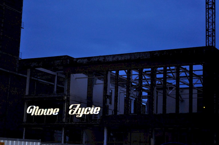 After the return from Berlin, New Life became the core of artistic workshops held at Teatr Powszechny in Warsaw that had earlier hosted the installation on its territory. The main goal of the programme titled "New Life — Public Improvisation" was to create a space for cooperation between young artists (students of the Warsaw Academy of Fine Arts) and people from marginalized groups. Recently Elżbieta Jabłońska has assigned the money received from the acquisition of the installation by Nomus, the Museum for Contemporary Art in Gdańsk, for the construction of a small house on the bank of Wisła river. The artist is planning to use it as a place for residencies, intimate concerts, shows and exhibitions, both for the rural community and for outside visitors. Elżbieta Jabłońska considers the white neon on an old rusty construction to be a symbol of revival: "The title New Life does not necessarily mean a revolution, and it is not necessarily connected with an end. It can happen anywhere, anytime. It is about putting yourself into a state of readiness to change, opening to the unknown, searching for new solutions for yourself, but also for places that lose their meaning." The work is an example of how found objects can obtain new 1 significance and recharge their historical aura through being relocated and reinterpreted by artistic means, forming new statements in public space. It is important to note that the artist hasn’t been dwelling upon or citing explicitly any ideological components of the object’s history — instead, playfully and assertively, she has been turning politics into poetics, appealing to and searching for the new peaceful universalities.
