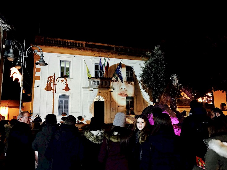 The different editions of "Private Conversation" are steps of a journey in which the artist and the users play to overthrow the private in the public, and the public in private: their family affections, their secrets, their idiosyncrasies, their own history and traditions. During 2009-2013 the project was focused on art residencies, with the aim of realizing of sitespecific artworks, developed by Andrea Nacciariti, Alessandra Andrini along with Elisa Laraia. From 2013 on, the project developed through three different phases: 1) Urban Laboratories, in which through video interviews are collected, on specific topics, thoughts, frustrations, hopes, emotions of privileged witnesses and common citizens. In 2016 edition, Students and other volunteers in every municipality collected the memories of their own cultural heritage. the town of Tito, some high school art students have rebuilt the history of art from the eyes of a local artist form the twentieth century; in Pignola, the community shared the memory and heartfelt popular participation in the traditional Donkey Race, in honor of Saint Anthony; in Picerno the locals chose the issue of accession of the community to the Neapolitan Republic of 1799. 2) the re-elaboration of the interviews in a video that mediates between documentation and artistic interpretation; 3) urban screens, video projection on historic buildings and / or abandoned buildings revitalized by this new function. The voices of the community spread in the urban space, in the streets, in the alleys, and become usable by the entire community in order to foster relationships within the place itself, highlighting the history, needs, in order to promote shared vision of reality and a new way of making community.