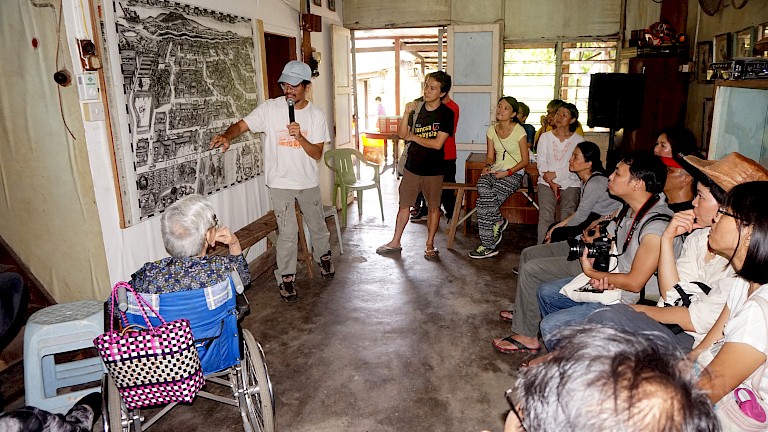 Since the beginning they had used the cultural programming, visual communication and storytelling to express their disagreement towards the authority. This way has been proven to be effective and more convenient for the villagers to adapt, as it is non-confrontational.One of the medium that Victor use to express is photography as it is able to convey the villagers concern of the current situation. Victor was also encourage the visitors and participants to preserve the village by capturing the life of Kg. Hakka Mantin with photography or other media; in which conveyed through workshop/seminar with mobile photographic exhibition and on-going documentation of the village programmes. In planning their activities, both Victor, SeongFoong and the villagers were relatively fluid in the terms of communication and approach process of setting up their strategies through discussion and joint planning between members. The first activities that they held was ‘Last Walk’, which the audience were guided to walk around the village and visiting specific homes for storytelling. The villagers were telling and sharing their memories on specific topics and the audience were actively encouraged to participate in stories exchange. Through this way both villagers and audience were in the same position of gaining each experiences. In order to meet their objectives of safeguarding the village community, Victor and SeongFoong assist them to advocate their needs of justice and recognition. This attempt has also reflected the intangible elements amongst the villager that includes the spirit, neighbourliness, traditional values of family and home, and as a way also to raise the awareness of their history between the villagers and the outsiders. As a result, the villagers were able to gain their renewed sense of identity, pride and dignity. In December 2013, they had also built an Interpretative Centre a centre place for each member of the village community to actively involve to meet and discuss their programme development along with interpreting themselves. The centre itself is significant for each village community member as it is the heart and the starting point of their activities.