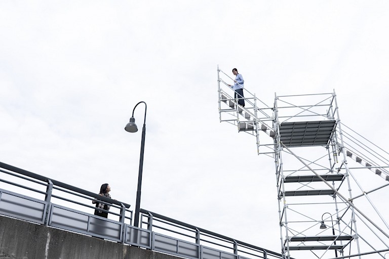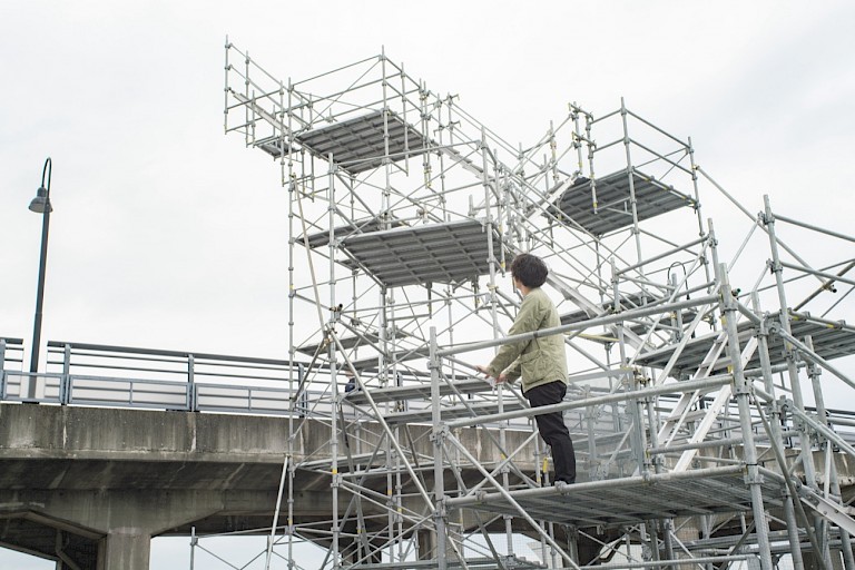 Atsuko Mochida's motivation in creating “Steps” often revolves around establishing new perspectives on public spaces. Climbers are required to sign a safety-related commitment before preparing to ascend the “Steps” staircase installation. According to Atsuko Mochida’s verbal description, climbers typically sign voluntarily to experience entirely new view. This initiative not only provides viewers with novel ways to engage with art but also influences their perceptual framework of artistic works to a certain extent. ArtTank founder Toshiro Kondo(近藤俊郎) has commented on Atsuko Mochida’s work, aiming to generate a new magnetic field from the relationship between the work and existing architectural spaces or its interaction with the audience. He emphasizes that “place” is a critical factor in Atsuko Mochida’s works, which continuously challenge new possibilities within different environments.ArtTank, established by Toshiro Kondo, is an organization dedicated to supporting contemporary artists and engaging in collaborative endeavors with them. They steadfastly focus on the value generated prior to the creation of artistic works, including the thinking, dynamic practices, and other values produced during the creative process."