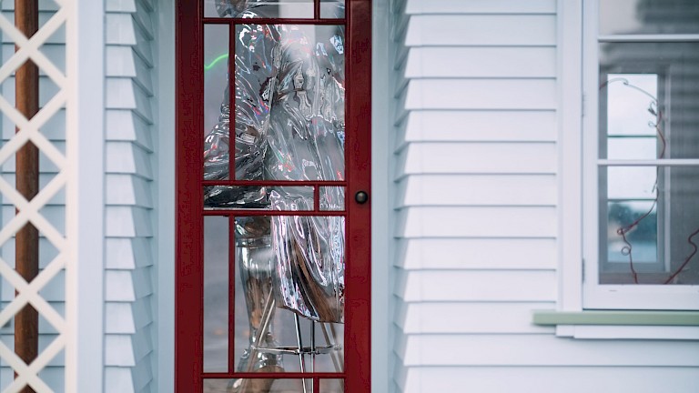 The Lighthouse: Tū Whenua-a-Kura (2017) by Michael Parekowhai is a 1:1 scale sculpture of a quintessentially 1950s New Zealand home. Parekowhai received the commission from Auckland Council after a real-estate company offered one million New Zealand dollars for a public sculpture to celebrate their 90 years in business. The artist’s concept was to erect a structure in the instantly recognisable style of what is known locally as a ‘state house’ or public housing. The sculpture engaged public and media attention in unprecedented ways, not only for its form but also the story behind how it came into existence. While early media bluster promoted the false idea that the artist planned to transplant an actual state house, or that it was an art world prank, The Lighthouse: Tū Whenua-a-Kura is in fact finished with the highly polished literal and conceptual gloss of Parekowhai’s practice.
