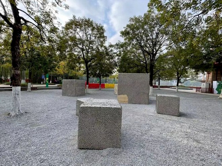 There are also many works that include public participation as an important part of the art. Jiang Shan's work With Together 2021 - Gift originated from the "With Together " art project he initiated, in which clay from 120 counties and districts is burnt into "With Together Marigolds", and QR codes are used to introduce the story of each piece of clay. Duoyun Wan 's Paper Toys incorporates paper-cutting elements into the practical functions of slides and swings, making it a favorite artwork for children. Yang Guang's Under the Shade of Green skillfully utilizes the trees in the park and the wok-shaped elements to create a space for people to rest and relax. The "With Together - Art Project" is an ongoing, open-ended, interactive art project, and a 2021 Foshan City Literary and Artistic Excellence Project.