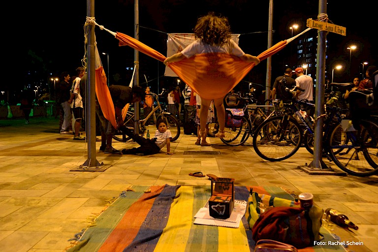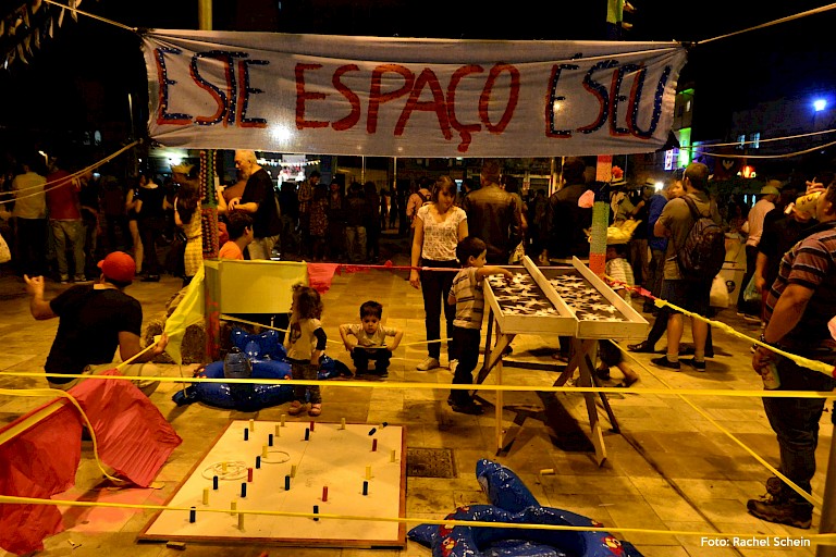 With a constantly changing schedule, ranging from karaoke to samba and passing through kites workshops, interventions, soccer and other fun activities, each participant can propose what they want to do or see at the area and everyone is invited to take part in the occupation.