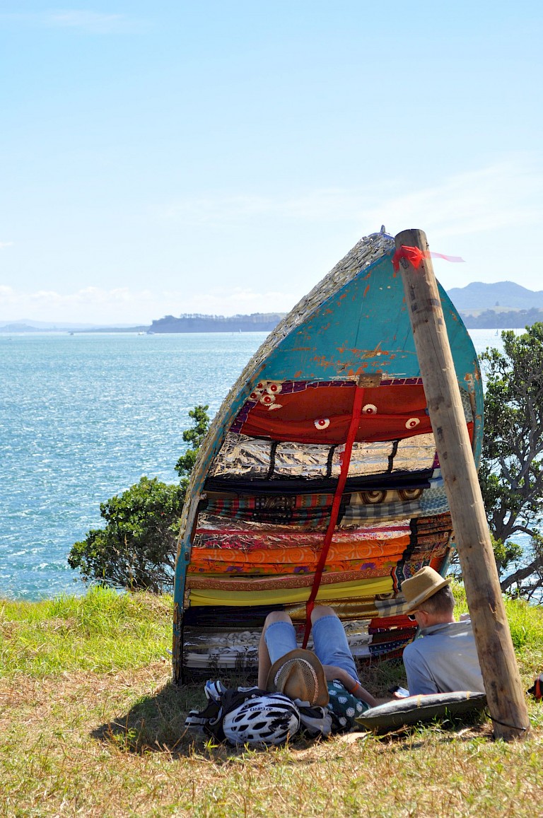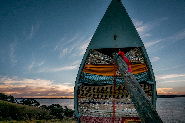 In 2016 artist Tiffany Singh responded to the Call for Proposals with a very ambitious project - to create an installation from disused small boats found on Waiheke that utilised the boats as sound shells for stories of refugee migration to be heard in a celebration of tolerance and diversity. The project would be a collaboration with the Auckland Resettled Community Coalition (ARCC), a grassroots, non-profit organisation led by former refugees for former refugees in the Auckland region.