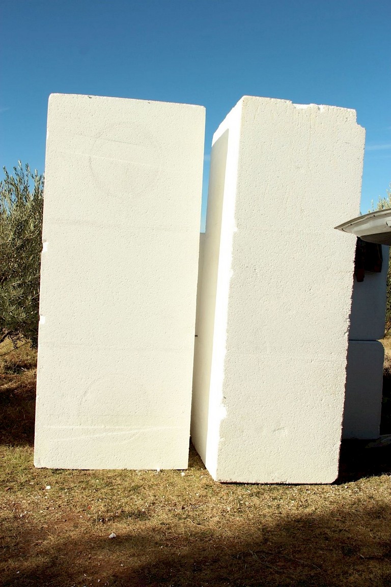 The visual artist presents an unusual installation at the Palais El Badii: a huge rock, polystyrene and plaster, seems wedged between two walls at the end of a narrow corridor. Hovering over the heads, the carved stone is reminiscent of ancient history and distant geological times. And at the same time, our attention is projected forward, towards a potential, sudden and terribly close exit. The pieces that constitue Zemmouri’s “l’Œuvre au noir“ are delicately brutal compositions, violently beautiful, where accumulations of small elements and silences, gravity and weightlessness, reveal equilibrium but also doubt. Selected by the curator, Reem Fadda, also associate curator at the Guggenheim Foundation in New York, in charge of the Art section of the Middle East, as part of the official program of the 6th edition of the Marrakech Biennale, Fatiha Zemmouri, a Moroccan artist renowned for her work around raw materials, unveils a colossal and poetic work entitled "In the shelter ... of nothing". Like a rock in almost zero weight blocked between the walls of the high walls of the historic Palais el Badi in Marrakech, this work provokes conflicting feelings between weight and lightness, power and fragility, balance and instability, confinement and elevation.