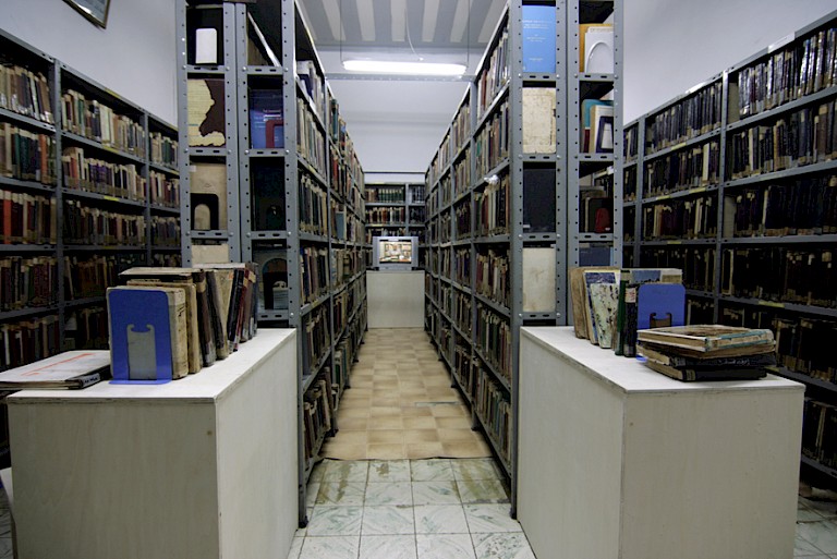 The relational dimensions of Catanzaro’s work were not limited to these encounters. As one of the few foreigners living in Nablus, she inevitably attracted the interest of the local community to her regular library visits, and the attention of library staff to the precarious conditions of the books in the prisoners’ section. Catanzaro was in fact the first foreigner to work in the library. Her relational practice also extended to sharing her findings, audio and video, through a local women’s network she initiated (Bait al Karama). It would not be unreasonable to claim that her interactions in the city led to the prisoners books becoming recognized as an important cultural legacy, with a consequence being the cleaning and restoration of the books and the improvement of the prisoners’ book section. The significance of Catanzaro’s public intervention was recognized by a commission from the Al-Ma’mal Foundation for Contemporary Art for The Jerusalem Show (A Needle in the Binding, Khalidi Library, 2011), curated participation by the Ethnographic and Art Museum at Birzeit University in the Cities Exhibition - Between Ebal and Gerzim (2011), and a medal/award of honor presented by the Nablus Municipality Public Library.
