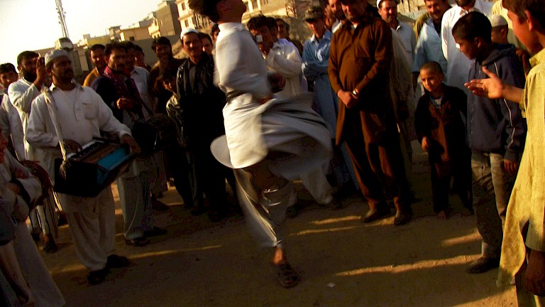 The music/dance intervention in public space, which is captured on video (http://vimeo.com/35740223), had a profound impact on those gathered. Young squatters came and joined the performance, contributing traditional dance, while numerous people gathered to share the experience. The spontaneous event was planned without official permission, and initially set up a conflict between the artists and squatter/spectators and local authorities. Police at first tell the crowd to cease. Participants insist that the gathering is just for fun. One man complained that Pakistan had become a country “where even displays of happiness are forbidden.” At this, the event takes a turn, with the police agreeing with the comment and allowing the performance to continue.