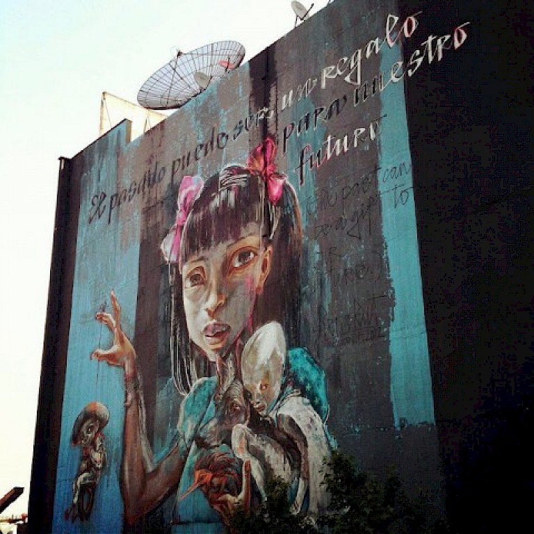 A series of events and paintings took place from April 30 - May 5, 2012, and this became a model for large-scale street art festivals in Latin America, mainly because it brought a kind of art usually secluded to underground places associated with criminality, right to the heart of downtown Mexico City, giving it the artistic status that it has nowadays.Although for visitors and locals the artists’ names were not so well known, actually having access to the creative process and witnessing their impressive skills in producing a painting of this scale, became the main focus of the festival as it connected the passersby with art and reconnected locals with their city.The event had three components, called: Walls, Words and Works. Words refers to the academic component; Walls, to the big-scale artworks on the streets; and Works, to small-scale works in galleries.