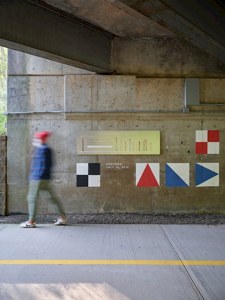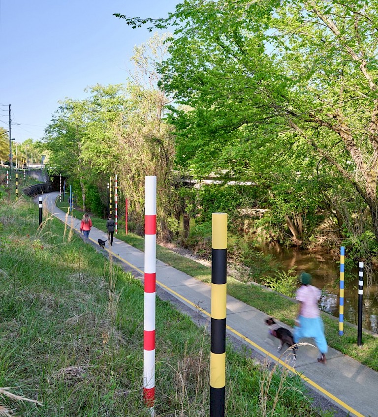 "Alluvial Decoder is an excellent example of how public art can be created to educate and invite conversation surrounding critical issues. Investing in artists to create a visual storytelling experience is one of the best ways cities can communicate a message and meaningfully engage our communities. The impact of an immersive experience in particular is much greater than simply printing a sign or telling a story. As an artwork, Alluvial Decoder was designed with careful attention to concept, aesthetics, and the history surrounding the site - all while being executed on an extraordinarily tight budget and with significant site constraints."" Kelly McChesney, Public Art Director, Raleigh Arts