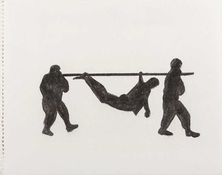 Since 2003 the artist Beatriz Gonzalez looked for ways to save the columbaria since they were endangered as an architectural venue. Because of its original status, the buildings could be modified or destroyed so long as the changes did not affect the main globe of the Central Cemetery. In 2007 Gonzalez had an idea to create a project that could bring attention to the columbaria as a place of memory and art-led urbanism or place-making. Gonzalez collected images from different newspapers that showed the realities of the armed conflict in Colombia. She then made a selection and made eight silhouettes inspired in the photographs. The images showed the way in which people carried dead bodies out of conflict zones, which are recurrent in the news.