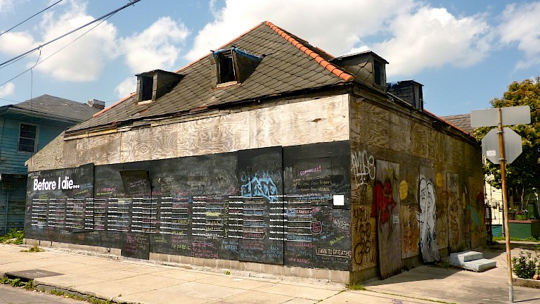 New Orleans has some of the most beautiful architecture in the world, yet it also ranks at the top in cities with the highest percentage of blighted properties in the country. Chang lives a few blocks from the first location of the Before I Die series. It had been a space that collected dust and graffiti over the years. Chang thought about how she could make this a nicer space for the neighborhood, and created a space where people could share their hopes and dreams with each other.