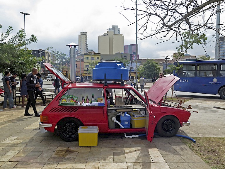 From the careful consideration of the site for its demographic and usage, thinking about the way it brings together populations that might clash, to the very specific reference of an out of production Brazilian Volkswagen model. This socially engaged initiative that provides a public kitchen space that is normally not available for homeless people to cook at focuses on addressing these needs albeit temporarily rather than concealing the issues at hand.