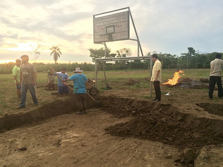 Cancha Abierta is a project that uses art as a facilitator agent of an action, not as an objective in itself. This action takes place on the activation of a collective or community ephemeral process with the objective of recovering the basketball field that has been blocked by the rising of the river. When the artist uses the archaeological excavation as a metaphor the process of digging up the field in a solitary action it provokes the other artists of the residency and the other members of the community to respond and to join efforts. The recovery of the field after many months of inactivity signifies the reactivation of a ludic public space for a community that is constantly beaten by the inclementness of life in this part of the world.