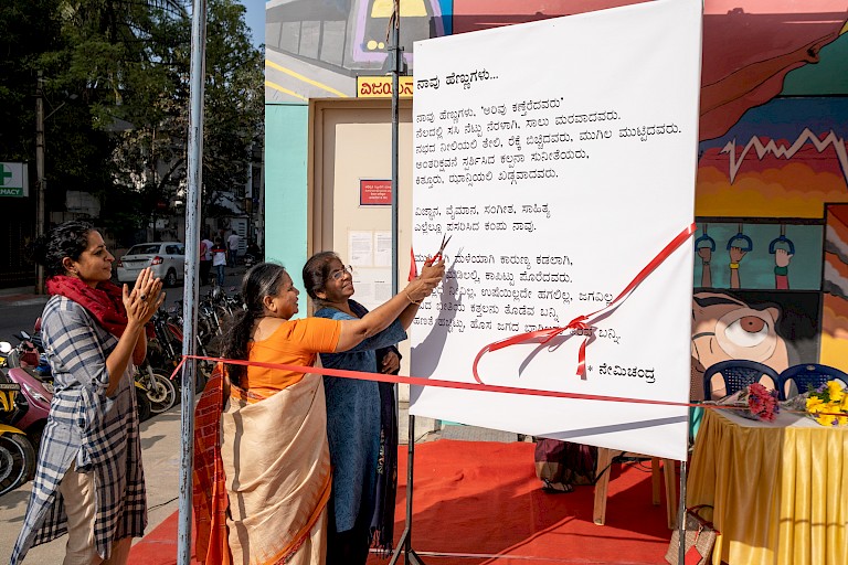 The project was done in a pilot format so that it could be replicated in any part of the world. Sexual harassment is not an issue faced only in India. A recent case of rape and death of Sarah Everard in London caused a lot of protests and made us all aware how unsafe it can be. It is a project that moves beyond reaction and understanding the idea of ‘the local’, from language to involvement of people in a certain area. The project focuses on ward no 24 (a single ward) among the 198 wards in Bangalore. One of the street re openings were done in a metro station away from ward 24 to have conversation about harassment in public transport systems.