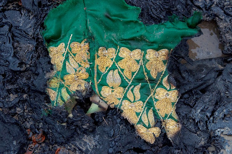 Thus, he decided to take these clothes from the sea, and even the half burned ones, and put them together to make beautiful and eye-catching masterpieces.