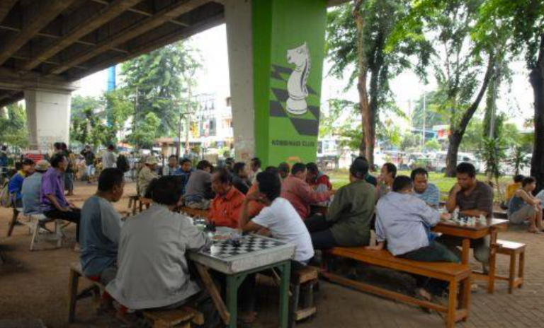Chess Park is created through artists’ collaboration with chess community that has been using the space frequently. Situated underneath flyover near Tebet train station, South Jakarta, the space that was considered to be a dead space has become a place of interaction through chess activities by local citizen. Since the activity is unlisted in the municipal office, this community has always been targeted by sudden police raid; although this positive activity has contributed to the neighbourhood safety.