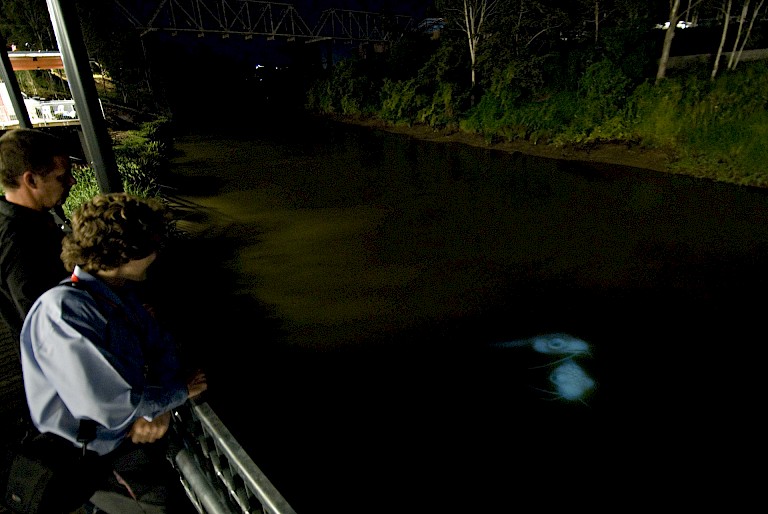 A curious mix of advanced computer-generated artificial life form in a pre-historic looking body, Classification Pending asks audiences to think about the links or boundaries between myth, evolution, and genetic engineering. At a time when ecological issues are at the forefront of public debate and the rise of sustainable art brings such issues into galleries and public art projects internationally, Classification Pending encourages the audience to reflect on the extinction of species and environmental degradation. Intriguingly, however, the work brings to mind an interesting point through its projection of the previously unseen hybrid river creature—although species are becoming more and more rapidly extinct, at the same time new examples of flora and fauna are discovered.