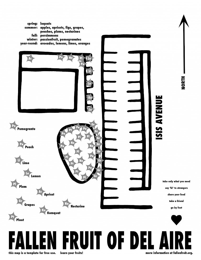 Viegener, Matias, David Burns, and Austin Young. “Fallen Fruit: A Mapping of Food Resources in Los Angeles.” Journal of Aesthetics and Protest. 3(June 2004). http://www.joaap.org/new3/viegeneretal.html