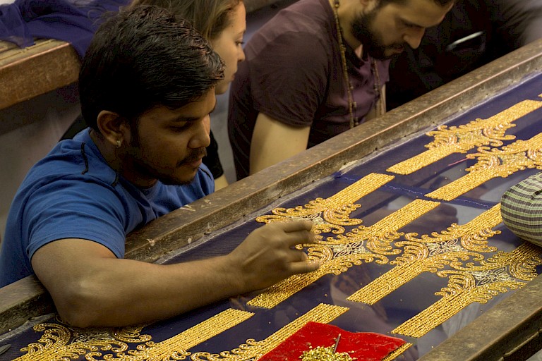 The Design Museum Dharavi was initiated by Jorge Rubio, after a prolonged stay in Dharavi showed him a whole new perspective – one that saw Dharavi’s residents as hardworking entrepreneurial and creative people who are constantly striving to improve their standards of living. The people of Dharavi have been working to create a more realistic perception of themselves – as pop culture has shown them as poor and helpless – a view shared by much of Mumbai. This view does not include the myriad small businesses and creative industries that exist in Dharavi, thus creating a narrative of ‘othering’ its residents. Rubio and partner Amanda Pinatih set up the Design Museum Dharavi to bring these people to the forefront. Through the museum, they hoped to establish new links between Dharavi and the rest of the city, promoting a greater exchange through a cultural program that features several workshops and exhibitions. Our mission is to focus on Dharavi’s potential and, through design, showcase it as what it really is: an exciting and promising creative community, full of potential and room for development. The museum has variously exhibited design ideas from makers in Dharavi, including exhibitions that included local pottery (Dharavi is home to a large potter community), broom making, embroidery, carpentry and more. Its last exhibition titled ‘The Waterproof Project’ saw a collaboration with the leather workers of Dharavi (who are famous for recreating some of the latest runway designs in leather), but replacing the leather with the blue tarpaulin spread across homes and shanties of Dharavi to waterproof them.
