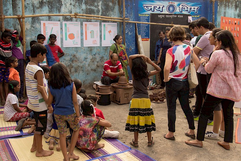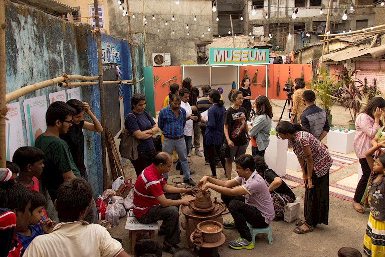 Dharavi Design Museum came about after artist Jorge Manes Rubio spent an extended time living in Dharavi. With partner Amanda Pinatih, and armed with the expertise of Matias Echanove and Rahul Srivastava of URBZ, an organisation already working with the development of Dharavi, Rubio set out to explore how design could create change within the community and how they saw their own lives. The project is funded by the Creative Industries Fund and by The Art of Impact, both organisations based in The Netherlands, where Rubio and Pinatih are based.