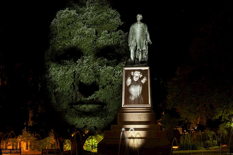 By taking his work on the road via the Digital Odyssey project, Walsh enabled rural and remote communities to not only be exposed to contemporary art, but to also engage actively with the production and presentation of artwork using highly advanced technologies. Alongside recreating major works from the artist’s earlier practice, Digital Odyssey allowed the generation of new digital artworks that reflected concerns and interests of particular communities. By consulting and collaborating with each community along the tour, the project fostered a traditional form of cultural exchange, but employed advanced digital technology. Drawing on local history, current concerns or local stories, the project generated works of art that echo back to the community something of itself, creating a site-specific and localized response.