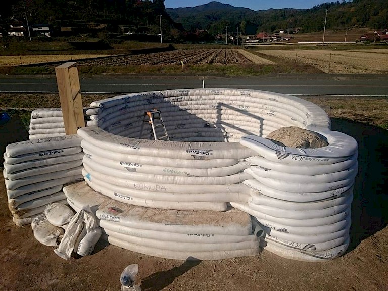 The objectives of this workshop is to generate links between the citizen of fukutomi area and other groups or individuals as well as to learn how to make a house by using mostly local materials.The earthbag house was used to hold many events such as international luncheons, music stage and barbecue.