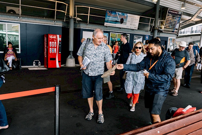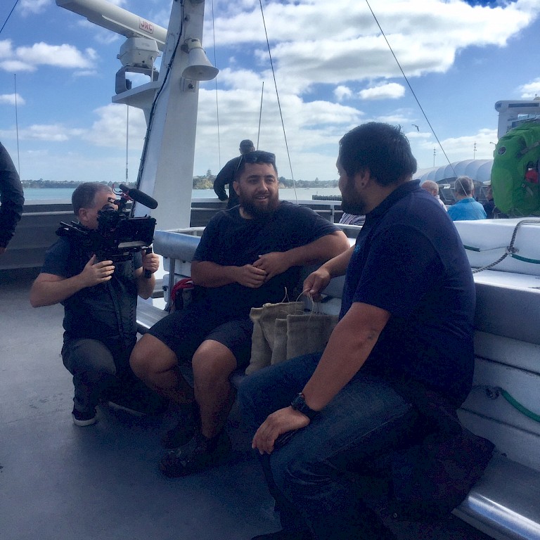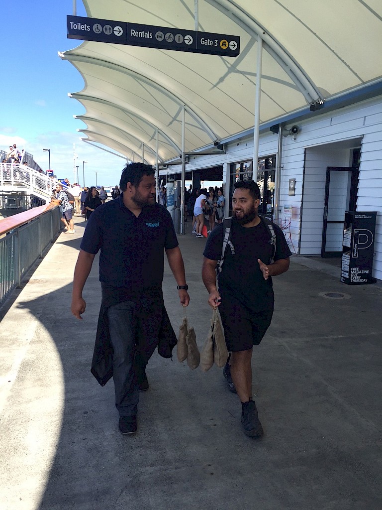 This is especially evident in how the Waiheke community embraced the project. Many commuters travelling from Waiheke to work in Auckland City would pick up a bag in the mornings at the Auckland ferry terminal as they arrived to ensure they could participate, knowing that Jeremy would have packed up by the time they finished work. Taking the bag to work and keeping it with them for the day, they then would return to Waiheke on the evening ferry and deposit the bag of soil at the depot. Creating more connection with the local community, Leatinu’u arranged for the bags of soil to be gifted to the Waiheke Resources Trust after the exhibition. Used to create gardens, the soil now forms part of a garden that grows vegetables and herbs for free community meals. Earthpushers was a project that spoke to and relied upon collective effort. Transferring 500 bags, or roughly one tonne of earth across the Waitematā Harbour during the project’s duration, the art work inspired overwhelming participation from virtual strangers - tourists, visitors to Sculpture on the Gulf and ferry commuters.