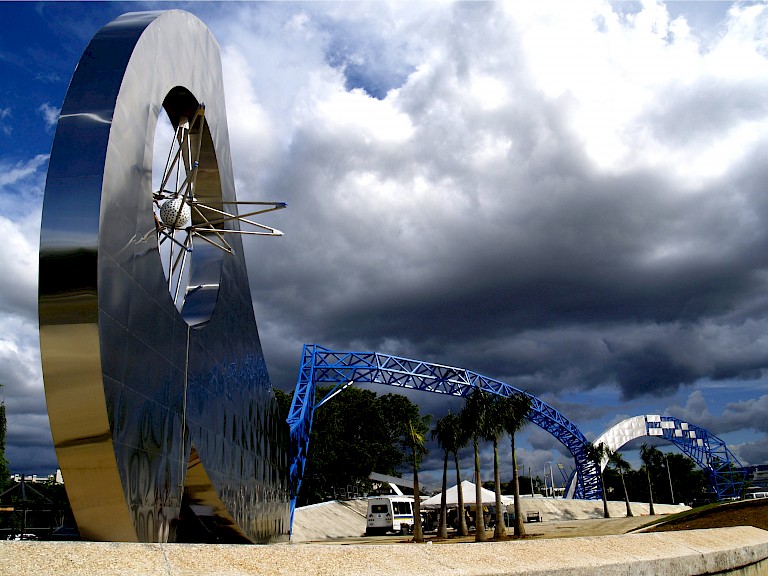 Rubio’s contribution is a monumental sculpture that spans the entire park with its 616-foot length. A section of the sculpture includes a three-dimensional, 25-foot-tall star that both rotates and is lit by solar-powered lights. The sculpture is part of Rubio’s broader artistic agenda to encourage those who interact with his work to “get in touch, in one way or another, with our own being and the position we occupy in our environment in relation to space, time, and light.”