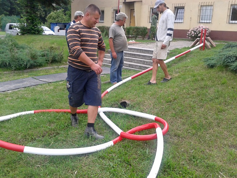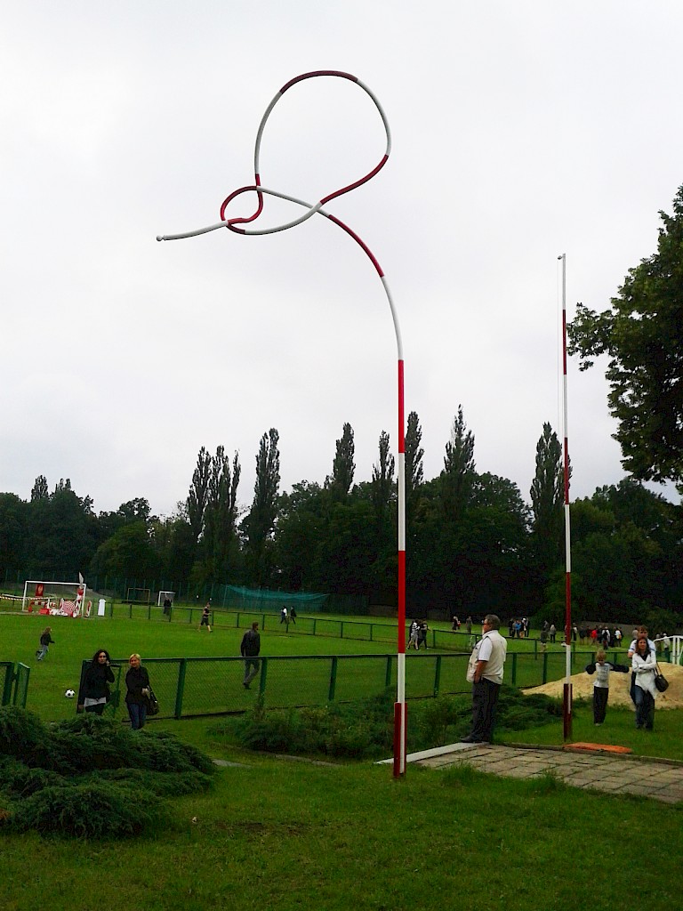 Further on, Kamila Szejnoch has developed the symbolic concept of the “Flagpole” in its relation to contemporary events. In 2012 she created the “Euro Flagpole”, a similar installation in the context of the Euro Cup 2012 in Poland and Ukraine, addressing cultural and geopolitical issues often hidden within big commercial sport events. One “Flagpole” was temporarily installed in Oławka Stadium in Wrocław (Poland). The second one became a part of the Main Project within an international festival for public art, Kyiv Sculpture Project 2012 (Ukraine). In both cases Kamila’s work hinted at the idea that mass events become platforms for ideological promotion, covering up the idea of political processes behind them.
