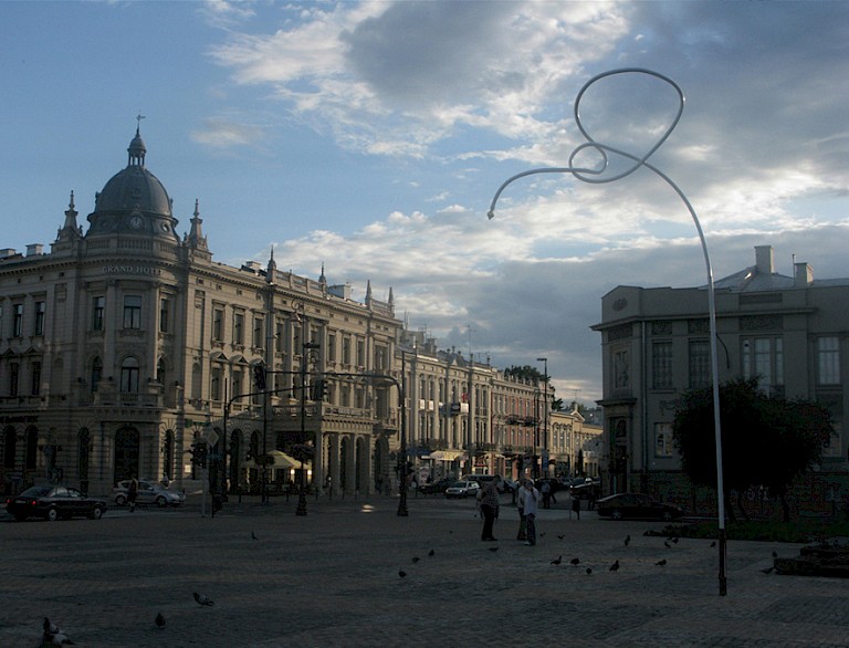 Kamila Szejnoch reaches to the area where official historical signs enter the reality of contemporary daily life, in which they are no more but distorted instruments for the support of certain political ideas. They are concentrated all in one square of a city where one may still find medieval walls, as well as the remains of Majdanek (KL Lublin), a large Nazi German concentration and extermination camp. The artist supplements this area with an object that imitates a basic tool for supporting a dominant political idea — that is, a flagpole. In addition to that, Kamila goes for even more straightforward realism, and shows this instrument as a deformed and bended entity that bears nothing, as a flag is nothing but an idea of power that marks and tries to control the public space. In the end, all the monuments in Lithuanian Square mark historic power representations that do not exercise themselves anymore, but they stay in public space, educating people who get there about the history of the city and country. The artists playfully contributes to this education process, making one pay attention to the idea of political objects that turn into empty signifiers in public space, that is, in the realities of everyday life in the city.