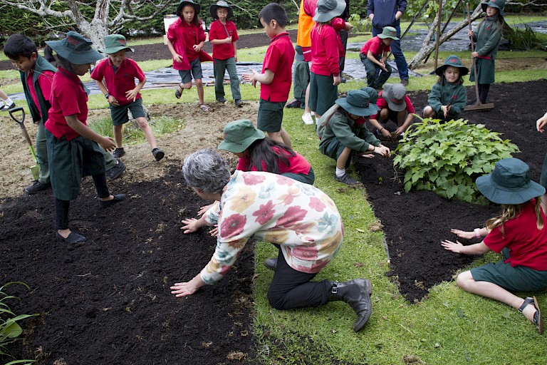 Besides hives, bees also need places and plants for forage, which is what Pasture Paintings provide. Pasture Paintings are community-designed and consist of “geometric plantings” that “make public green spaces more productive for bees and wildlife.” Several now exist through FTLB efforts, adding a distinctive aesthetic dimension to the cityscape. FTLB have even established a teaching garden at 42 Wellesley Street West in Auckland City Centre. Griffiths Garden is set up with planter boxes, a tool shed and a plant nursery, with an organic seed saving bank on the way. A 2-hour drop in class is held every week on Thursday, during which members of the public can learn about biological (rather than chemical) gardening; topics covered include seed saving and sowing, foliar feeding plants and working with microorganisms.