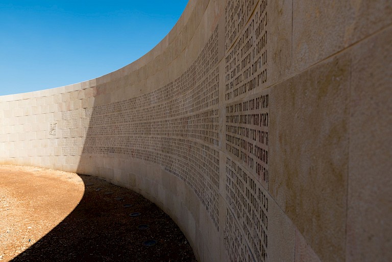 The Palmach Harel Brigade was an elite “strike force” established in 1941, which played an important role in the First Arab-Israeli War of 1948 keeping the route to Jerusalem open for supplies of food, water, medicine and munitions to the besieged city. Many fighters in the Brigade lost their lives in the Jewish struggle for independence, most of them very young (some as young as 15). Gan Harel (“Garden Harel”) is a public work by Israeli artist Dani Karavan memorializing the role played by the Palmach Harel Brigade in 1948. Karavan was approached by a group of Brigade veterans to create the work, and was assisted by a long-time collaborator, Landscape Architect Zvi Dekel to realize the project between 2006-2013.