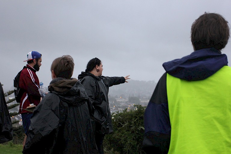 As it moves through various streets and spaces that held importance for Apelu’s Niuean or European ancestors, Generation Exchange creates a pilgrimage of sorts, leaving the artist “wide open”, but also creating a space for participants on the walk to feel comfortable in the act of exchange. The extended duration of Generation Exchange, roughly three hours for each walk, encouraged this, offering space for participants to connect, relate stories and find commonalities in their own family histories. The significance of exchange, specifically oral exchange, in this project connects the work to two major Polynesian traditions. The art of whaikōrero, or oratory, is at the heart of Māori culture, and korero (speaking) is seen as vehicle for mauri (life force), a force that travels between people, people, and things. This finds its counterpart in the concept of Talanoa in Pacific cultures, a Polynesian word which broadly means to talk or converse and form connections through this process. Talanoa is almost always carried out face-to-face and is a process of inclusive, participatory, and transparent dialogue. In a world of art that is sleek, shiny, and clever, and often art-aboutart, Generation Exchange is without artifice, intimate, and disarming.