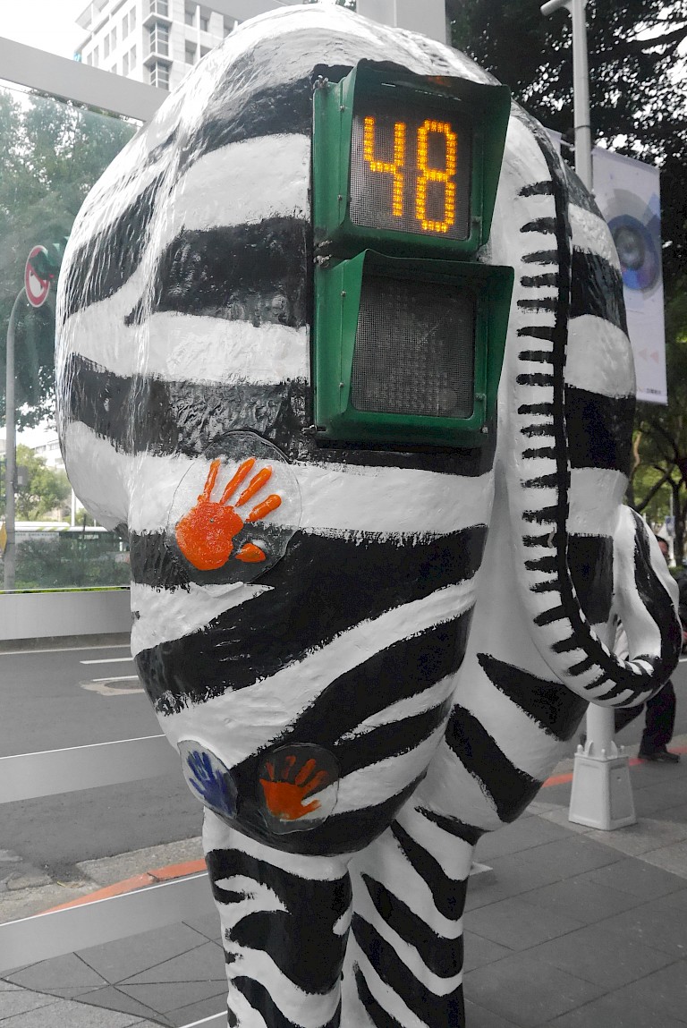 Although the nine works have their own merits and show their own interests, "Time Zebra Crossing" is still a rare type of humor in Taiwan's public art today, more than 20 years later. It is at a crossroads filled with people, next to the zebra crossing, facing the road in a zebra half-length position, and the horse butt is facing the pedestrians waiting for the traffic light. When the pedestrians look at it, they will also see two handprints on it. One red and one green pat on flattering impartially. The traditional culture of "flattering" means to please others through praise and flattery. Seeing the visualization of "flattering" makes people can't help but smile.